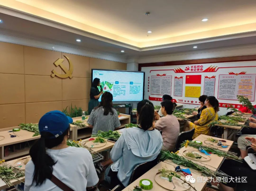 为继承和发扬中华民族优秀传统文化,让居民感受到节日的温暖。6月20日,九原区计生协联合恒大社区举办了艾草花环DIY活动。