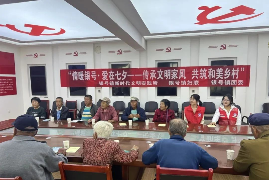 七夕佳节将至,为传承中华优秀传统文化、弘扬良好家风,8月28日,固阳县卫健委、县计生协联合银号镇以“情暖银号·爱在七夕——传承文明家风 共筑和美乡村”为主题,在镇新时代文明实践所设主会场,联动各村实践站开展系列活动,镇村干部、金婚银婚夫妻、好家风家庭代表及青年干部共赴这场充满温情的节日盛宴。